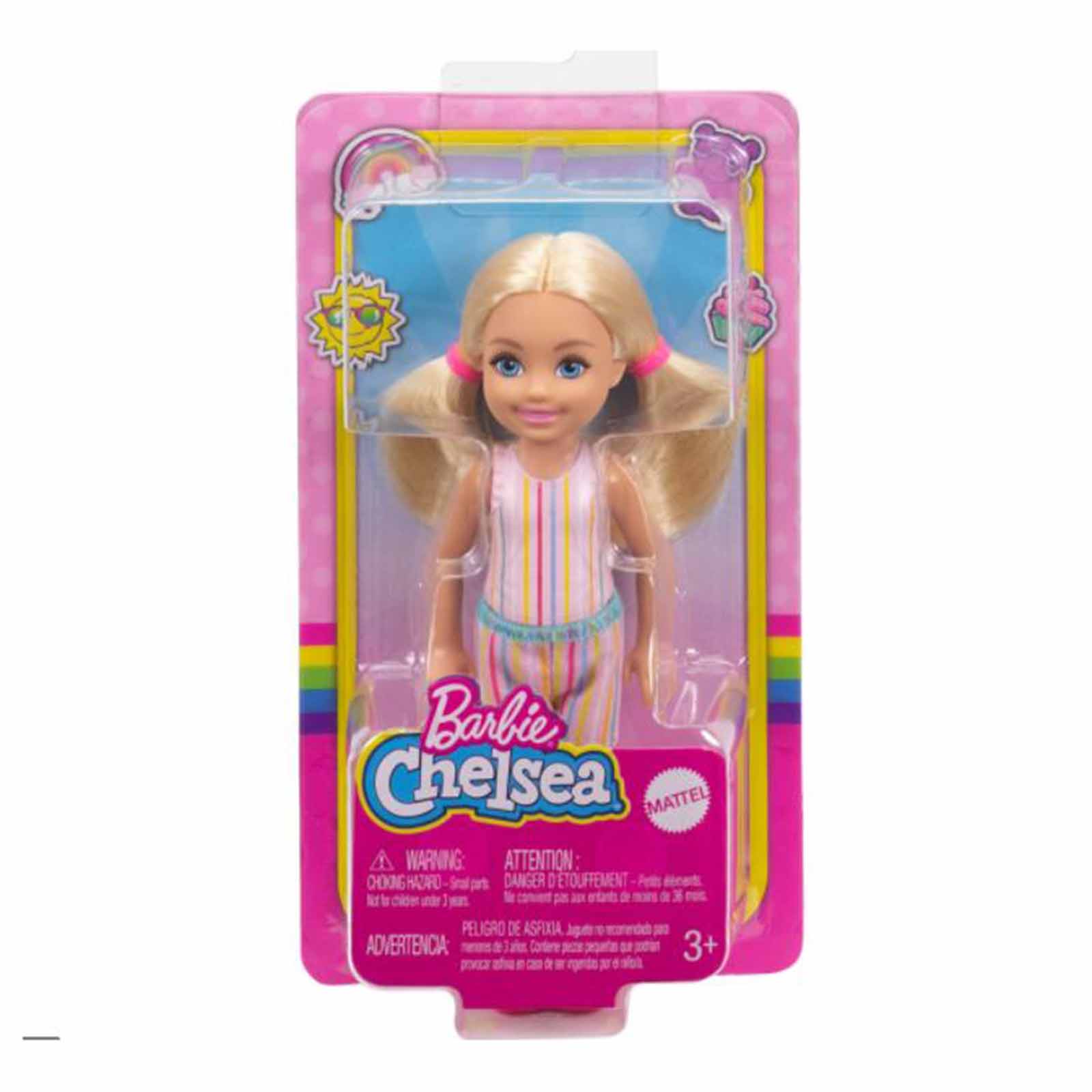 This is the Barbie Club Chelsea Blonde Striped Print Skirt 6 Inch Doll made by the good people over at Mattel.