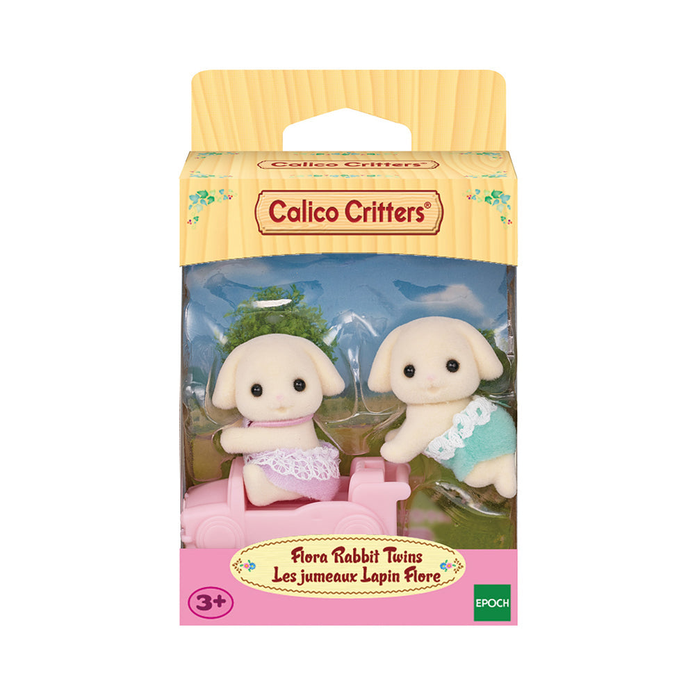 The figures' heads can be moved. Both of the Flora Rabbit twins (Sitting or Crawling) can ride the pushcart. The push-carts of all the twin sets can be connected together. The sitting baby girl's name is Viola, and the crawling baby boy is Runo. Combine with the Flora Rabbit Family, Blossom Gardening Set - Flora Rabbit Sister & Brother, and Sunny Castle Nursery sets (sold separately) for fun with the whole Flora Rabbit family! The included pushcart can be attached to other pushcarts. Combine together for even more fun imaginative playtime.