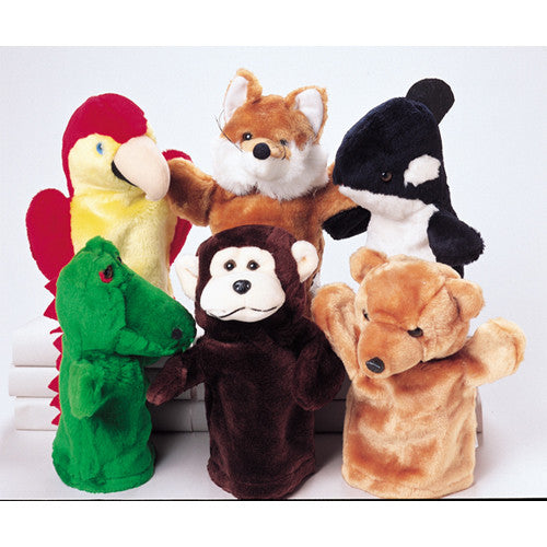 Six unique animal puppets, 11 inches tall. Extra soft foam filled heads, and easy to manipulate.