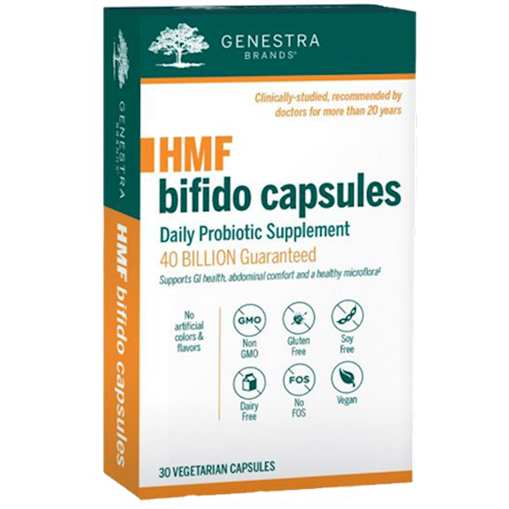 Six-strain Bifidobacteria combination Provides 40 billion CFU per dose Convenient once-daily capsule format Supports GI health, abdominal comfort and a healthy microflora* Includes proprietary, research-driven strains HMF Bifido Capsules offer six proprietary Bifidobacteria strains to support probiotic colonization in the large intestine. Bifidobacteria are normally present in the gut from birth to old age, where they play an important role in gastrointestinal health. Bifidobacteria help to mediate carbohydrate fermentation in the large intestine and contribute to the production of important short-chain fatty acids (SCFAs), including acetate and lactate. Although they are the most abundant genus present in the guts of healthy infants, Bifidobacteria concentrations decrease as individuals age, with greatest declines observed in the elderly. Clinical research suggests that Bifidobacteria supplementation can promote a healthy gut flora composition, support gastrointestinal comfort, and may have a particular role in maintaining immune function. HMF Bifido Capsules provide highly researched probiotic strains such as Bl-04, CUL-34 and CUL-20, which have been demonstrated in clinical trials to contribute to gastrointestinal and immune health.*