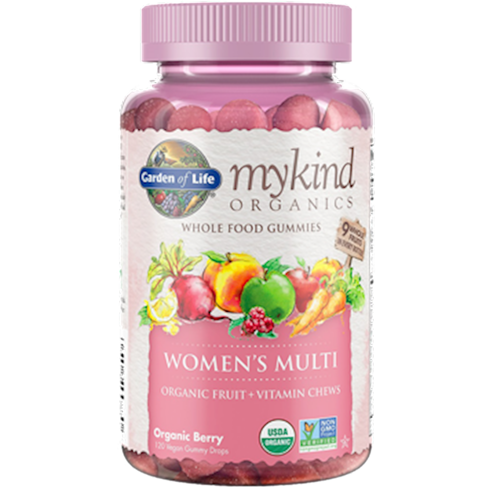 mykind Organics Womens Multi Gummies are Certified USDA Organic and Non-GMO Project Verified fruit and vitamin gummies. Made with nine organic whole fruits in every bottleno synthetic vitaminsmykind Organics Womens Multi Gummies come in a great-tasting organic berry chew made with pectin from non-GMO apples and organic orange peelno pig gelatin. The mykind Organics line of gummies is a true health crusader, ditching the conventional vitamin gummy course by steering clear or processed sugars and syrups, artificial colors and flavorings, animal products, and GMOs. With Garden of Life's clean gummy technology, there are no candy ingredients, no pig gelatin or corn starch. You can rest assured you are receiving a true, whole food vitamin fruit chew that not only is good for you, but is great-tasting! They are Certified USDA Organic, Non-GMO Project Verified, Certified Vegan, Certified Gluten Free and Kosher. mykind Organics Women's Multi Gummies Benefits: Contains Organic Pacran whole food cranberry With 800IU Vegan D3 Made with only whole food ingredients, mykind Organics Womens Multi Gummies have targeted ingredients to support womens special needs with Organic Pacran whole food cranberry and 800IU Vegan D3.