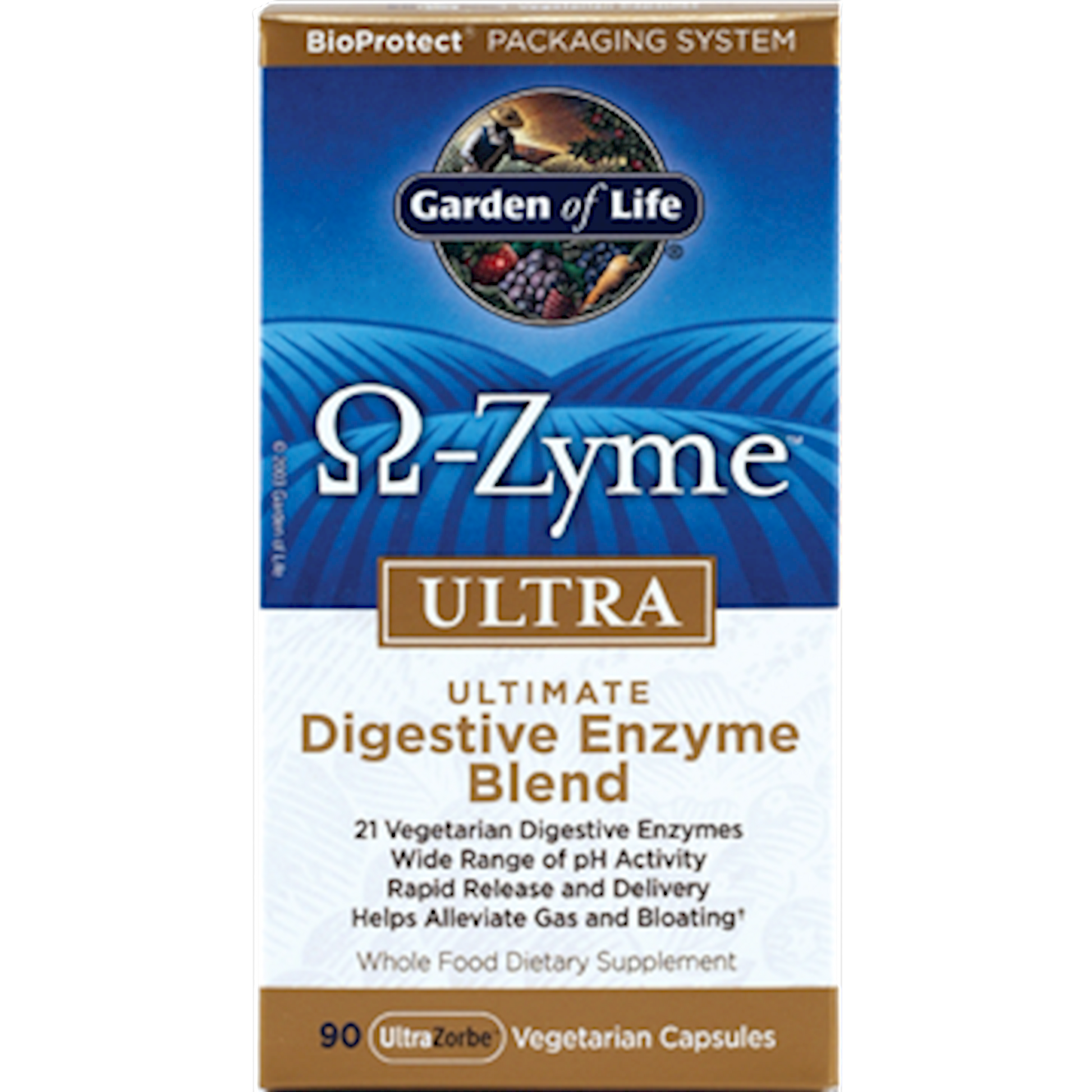 Serving Size: 1 Capsule Servings Per Container: 90 Disclaimer Amount Per Serving Omega-Zyme ULTRA Enzyme Relay Blend: 536 mg Protein Digestive Enzyme Dual Protease Blend 80,000 hut: 80000 Acid Function Protease 15 SAPU 15 Peptidase 2,000 HUT 2000 Papain 280,000 FCCPU 280000 Bromelain 225,000 FCCPU 225000 Neut. Bacterial Protease 4,000 PC 4000 Carbohydrate Digestive Enzymes Xylanase 575 XU 575 Pectinase 16 endo-PGU 16 Cellulase 735 CU 735 Invertase 225 SU 225 Glucoamylase 50 AGU 50 alpha-Galactosidase 450 GALU 450 Amylase 25,000 DU 25000 Fiber Digestive Blend: 6 mg Phytase Hemicellulase beta-Glucanase Diastase 275 DP 275 Fat Digestive Enzymes Lipase 5,000 FIP 5000 Dairy Digestive Enzymes (Protease, Lactase) 53 mg Digestive Botanical Blend: 25 mg Ginger (root) extract Turmeric (root) extract Trace Mineral Blend 5 mg Ionic plant based minerals Ionic ocean based minerals alfalfa Other ingredients: vegetable capsule (cellulose), magnesium