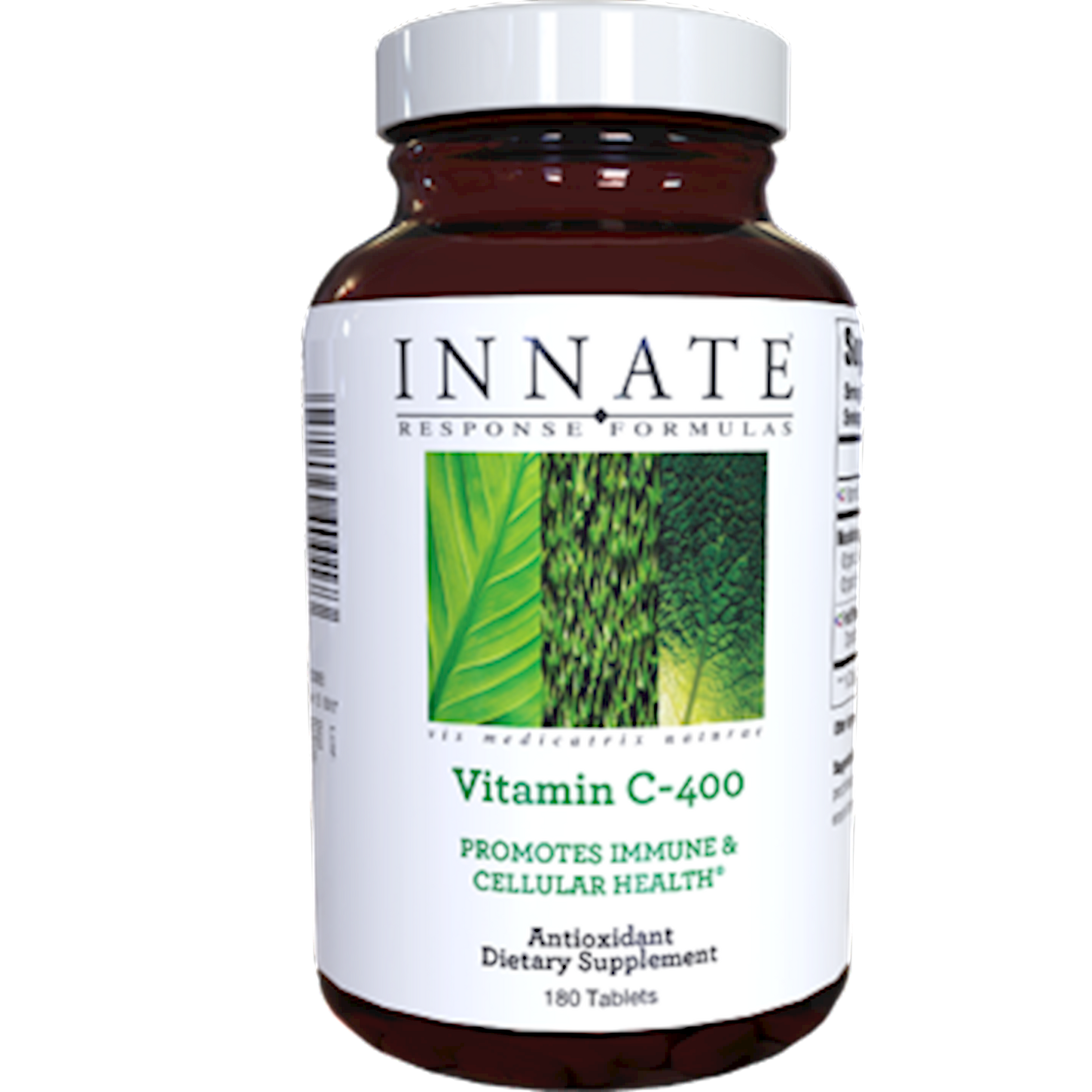 Serving Size: 1 Tablet Servings Per Container: 180 Disclaimer Amount Per Serving Vitamin C (ascorbic acid with organic orange) 400 mg 444% Nourishing Food & Herb Blend: Organic Brown Rice, S. cerevisiae, Organic Broccoli, Organic Parsley Leaf, Organic Carrot, Organic Beet Root 225 mg Fruit Phenolic Blend: Organic Whole Orange, Organic Cranberry, Organic Blueberry 50 mg Other ingredients: Cellulose, Stearic Acid, Silica